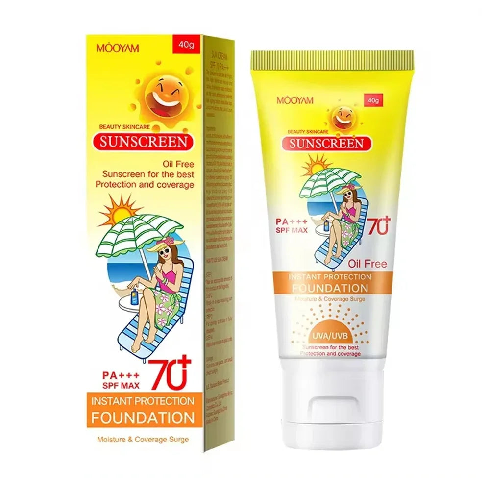 The MOOYAM Sunscreen Cream offers advanced sun protection with SPF70 and PA+++ rating, designed to shield your skin from harmful UVA/UVB rays. This oil-free formula ensures a lightweight, non-greasy feel, making it ideal for daily use, especially during outdoor activities. With its instant protection foundation properties, it provides both moisture and coverage, enhancing skin tone while protecting against sun damage.